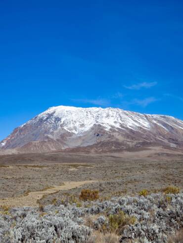 Today’s trek is along a good path through open moorlands, with your first views of the Kibo and Mawenzi peaks.